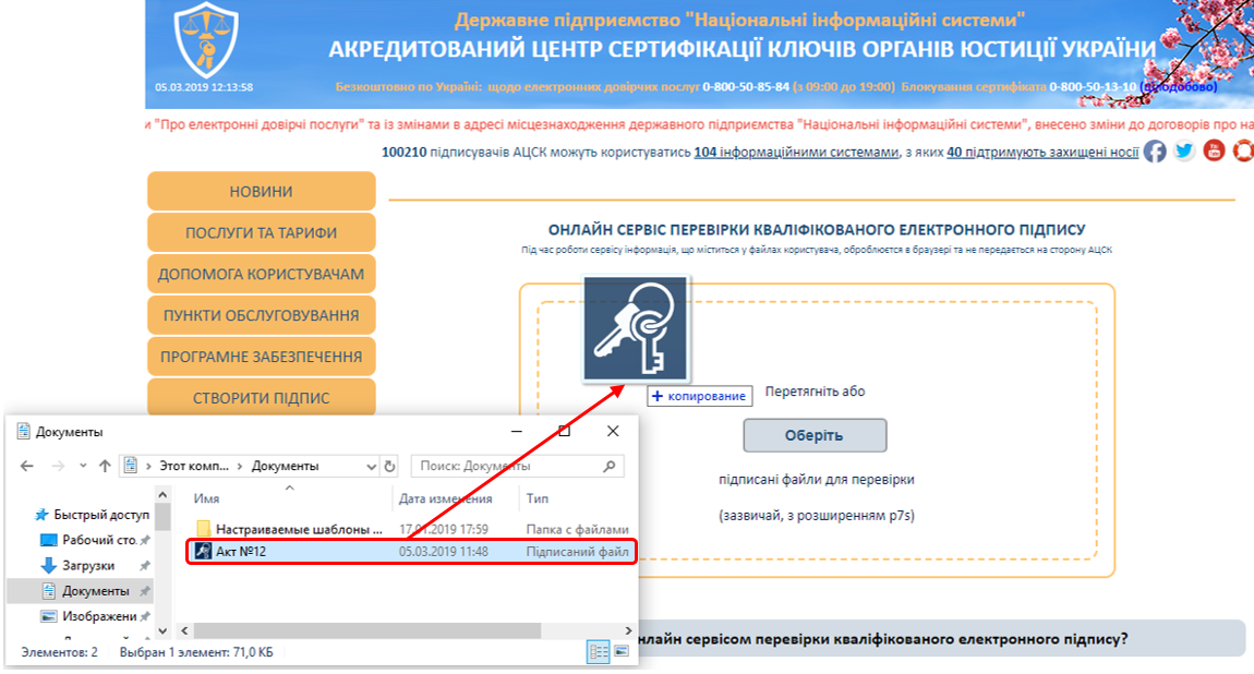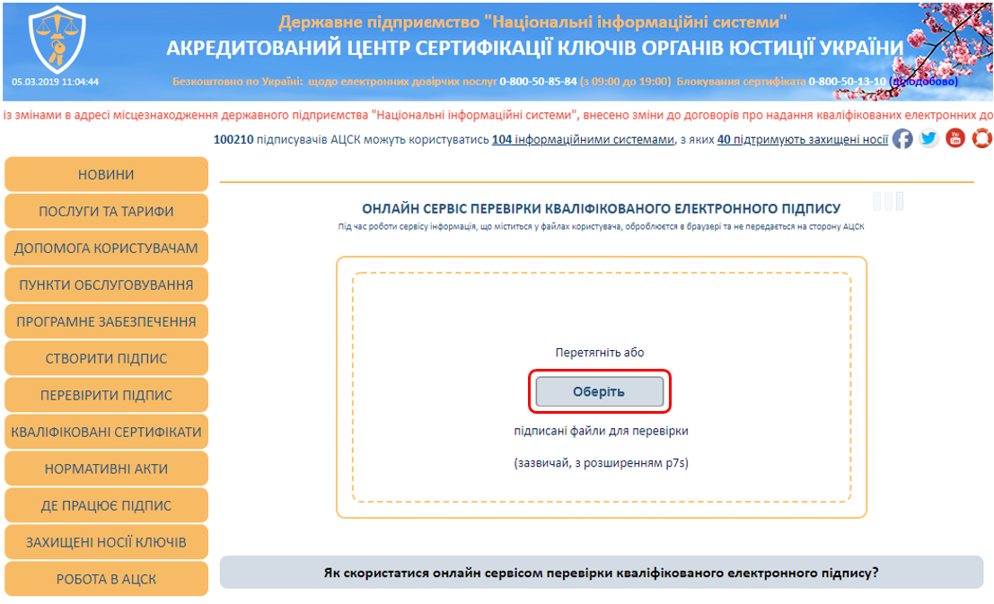 1. Перевірка КЕП на сайті АЦСК органів юстиції України: